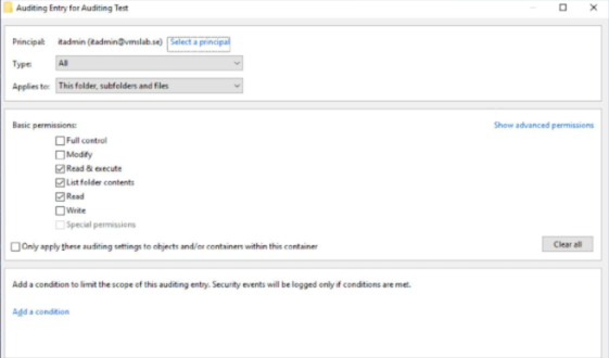 Add the Users or Groups that you want to audit and check all of the appropriate boxes.