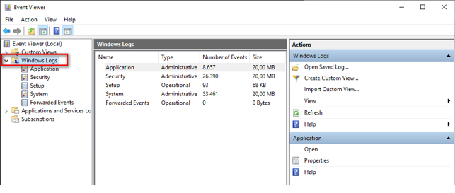 - Go to “Windows Logs” folder and expand it: