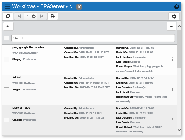 The total number of records appear in the title bar. This number may be dependent on any filter applied. For more details, see Sorting and Filtering the Workflows Display.