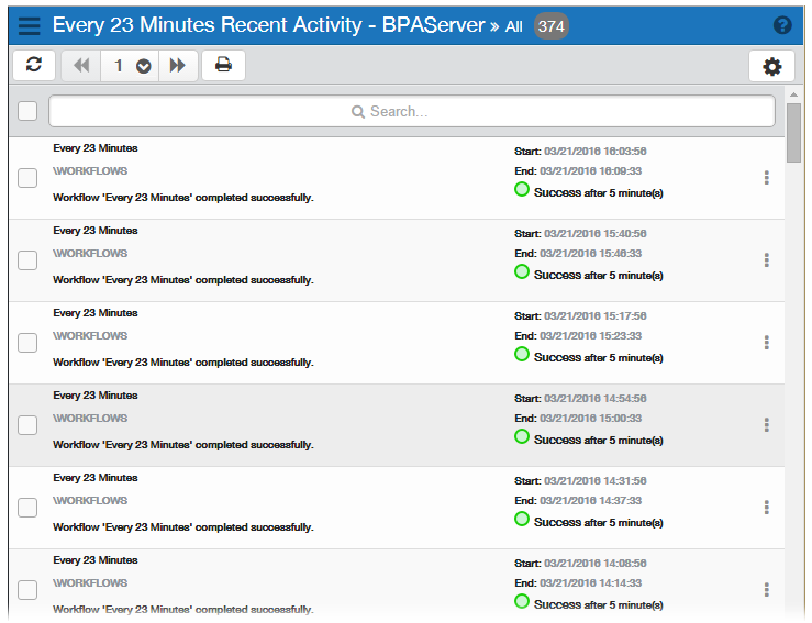 The Workflow History page can be accessed from the Workflows and Automate Enterprise Activity page as well as the History, Active and Upcoming widgets. Simply click the Show Actions