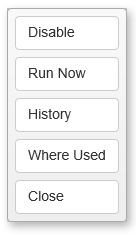 - Disable: Disables a workflow or enables a currently disabled workflow. For more details, see Disabling/Enabling Workflows.