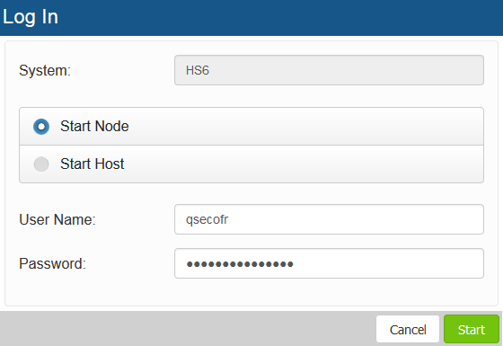 Enter a User Name and Password for a profile that has sufficient authority to start the host or node.