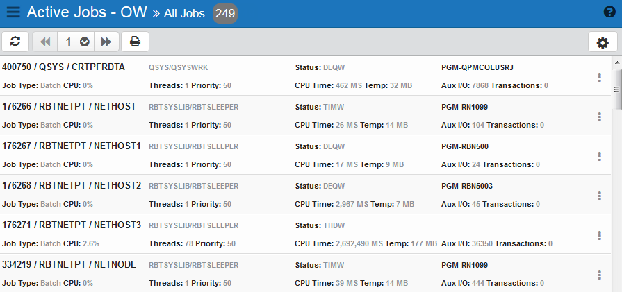 The Active Jobs page contains information about all of the jobs currently active on your IBM i server.