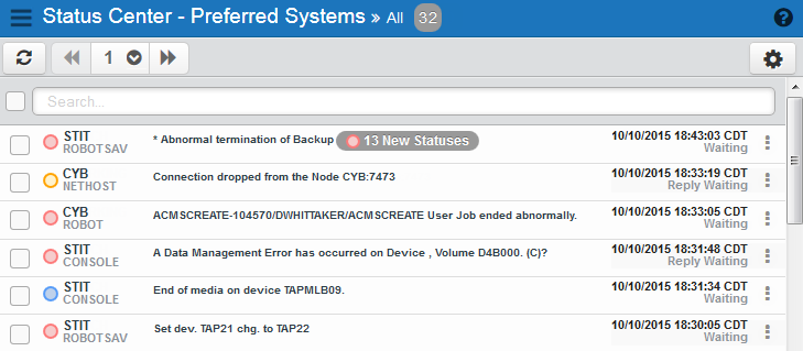 The statuses in the list are filtered by whatever you've set under Preferred Systems.