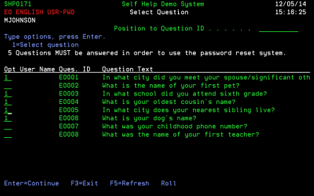 The objective of this program is to allow you to select one or more questions that you wish to provide answers for. The program will display Question ID's in alphabetical sequence. There is a ‘position to’ facility that allows you to find the required question ID quickly.