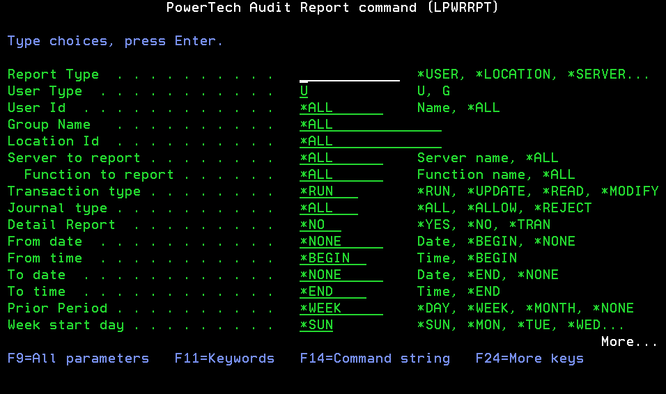 The LPWRRPT command provides a command-line interface to Network Security audit reports. This allows scheduling reports through the job scheduler or other scheduling function.