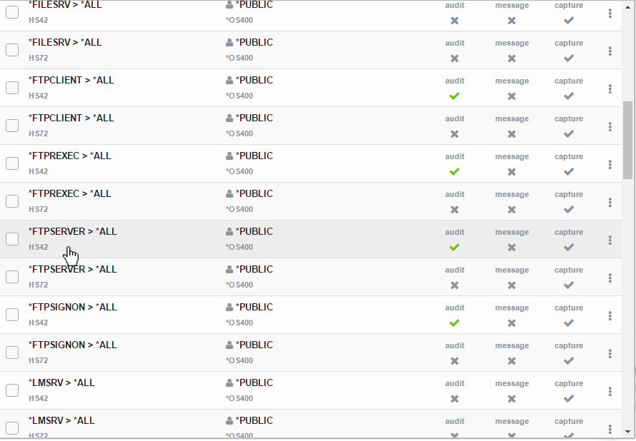 - In the search box, type *PUBLIC from the drop-down menu to display the default user rules for each server.
