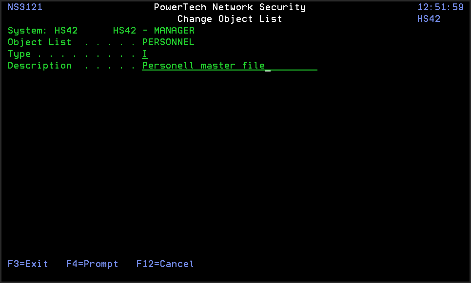 To view these options, from the Network Security Main Menu, select option 4 to display the Work with Security by Object panel. Select option 1 to display the Work with Object Lists panel, then enter a 2 in the Opt column on one of the Object Lists.