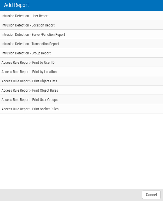 - Click Add and choose Intrusion Detection - Server/Function Report.