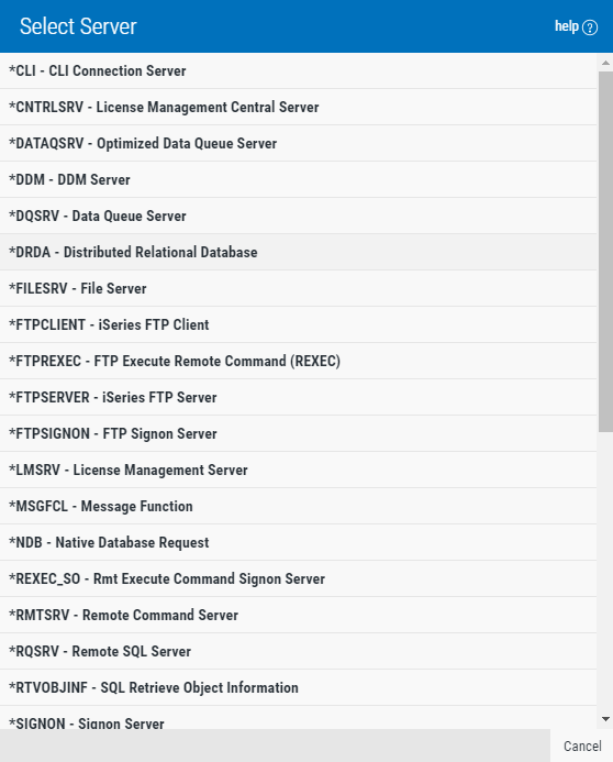 This window allows you to select a server function when adding or changing a Rule or User+Location Pre-filter.