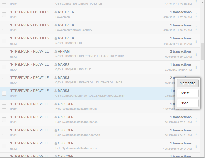 NOTE: When choosing to memorize a transaction, the user still must have authority to any objects (libraries, files, folders, and so on) that are named in the transaction.