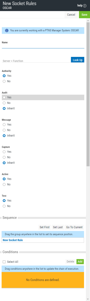 Click Save to save the Socket Rule to the database. Choose Cancel to dismiss the screen without making changes.