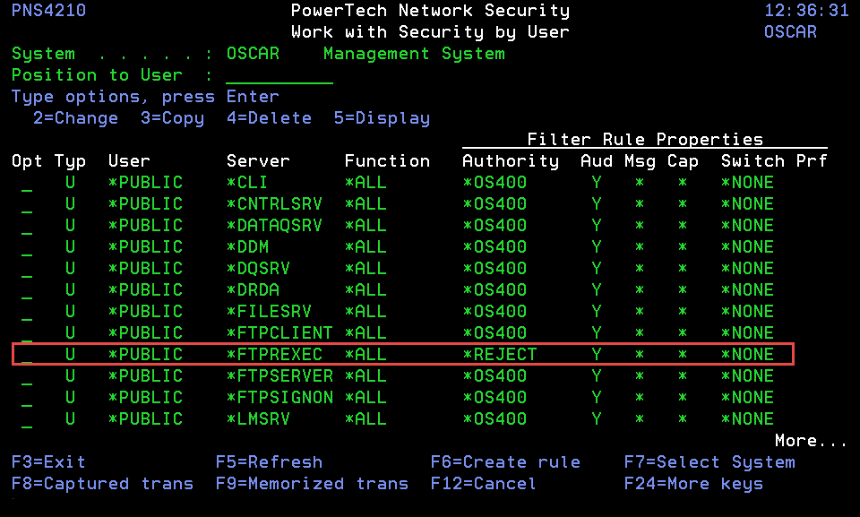 If you are using Central Administration to manage multiple systems, note that the default *PUBLIC rules cannot be copied to Endpoints. Each default *PUBLIC Rule will need to be changed to *REJECT manually for all Endpoints individually.