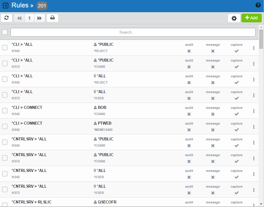 icon indicates a User rule. User represents the identity of the person initiating a transaction as a user profile. The special value *PUBLIC, when used on a rule, means that the rule applies to any User lacking a specific rule. When used as a subset or selection parameter, *PUBLIC means to select all such rules for display or printing.