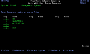 - Press F3 to return to the Work with User Groups panel. Now, when you create or edit a user rule, choose User Rule Type G to select the User Group (instead of a profile).