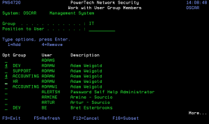 - Press Enter to remove the user(s) from the corresponding group(s). In the above example, profile ADAMW will be removed from the DEV and ACCOUNTING User Groups.