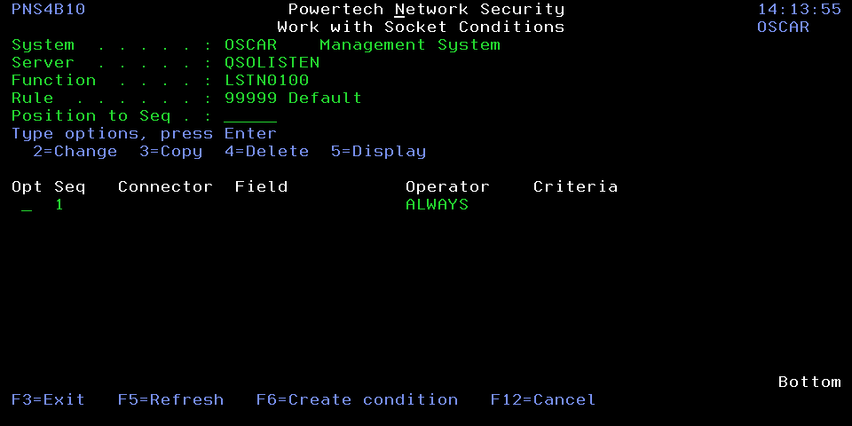 The Work with Socket Conditions panel allows you to view or change Socket Conditions.