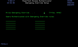 The Emergency Override Setup panel allows you to configure options for the Emergency Override.
