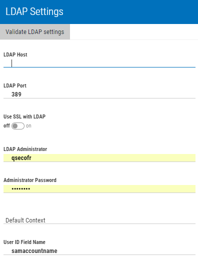 LDAP Settings screen
