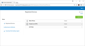 - Disable. Choose this option to prevent the device from being used to authenticate. You might choose this option if, for example, the device has been lost. Once a device has been disabled, it cannot be re-enabled by the user. It can only be re-enabled by the administrator. A disabled device also cannot be deleted and re-registered. Because of this, a lost or stolen device, once disabled, cannot be used to authenticate.