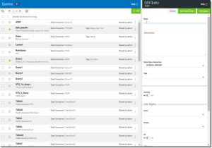 - Modifying the query attributes like name, description, tags, sharing and edit rights