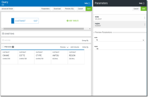 In the Query Editor press the Parameters button . The Parameters panel opens on the right.