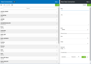Credentials - For the host/server defined in the URL above, enter a valid username and password of the user that will process requests by this data connection. Press the Show Password button