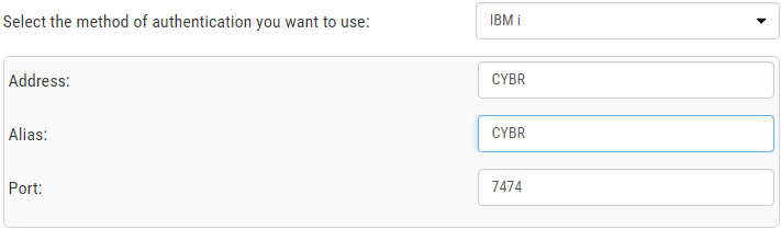 3. ClickTap in the authentication method field and select LDAP, IBM i, Automate, or Webdocs for i.