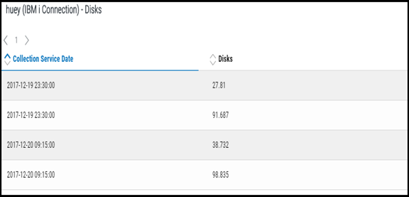 For the selected systems, you use this asset to create a widget that displays disk information, the percentage of time the disk unit is being used during a period of time (Busy) and how fully allocated the disk was during that time (Used).