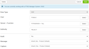 If you are using Central Administration to manage multiple systems, note that the default *PUBLIC rules cannot be copied to Endpoints. Each default *PUBLIC Rule will need to be changed to *REJECT manually for all Endpoints individually.