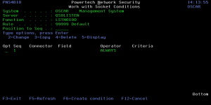 On the Work with Socket Rules panel, choose option 1, 2, or 3. Enter 8 for a Socket Rule.