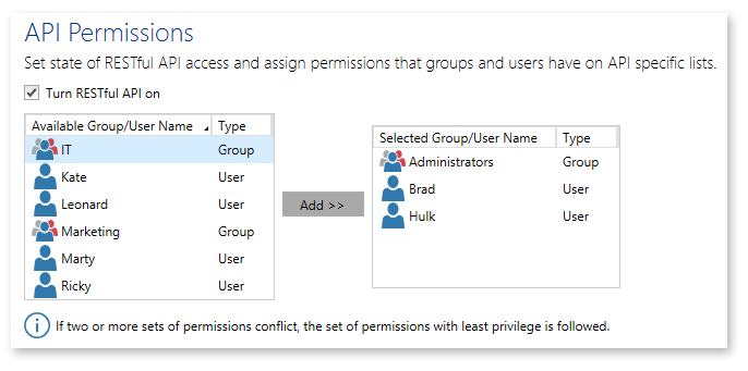 API Security gives administrators the ability to manage and protect Automate Enterprise API resources through encryption and authentication. With Automate Enterprise Standard Edition, you must first turn RESTful API on in order to expose the API in Ops Console. With the Enterprise Edition, you also have the capability of assigning elements of authority to users or user groups based on the amount of access they should have on specific API lists when using Ops Console.
