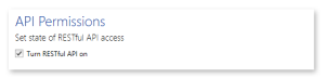 From the API Security page, add a check-mark to the option Turn RESTful API on (turned off by default).