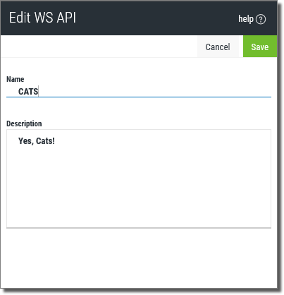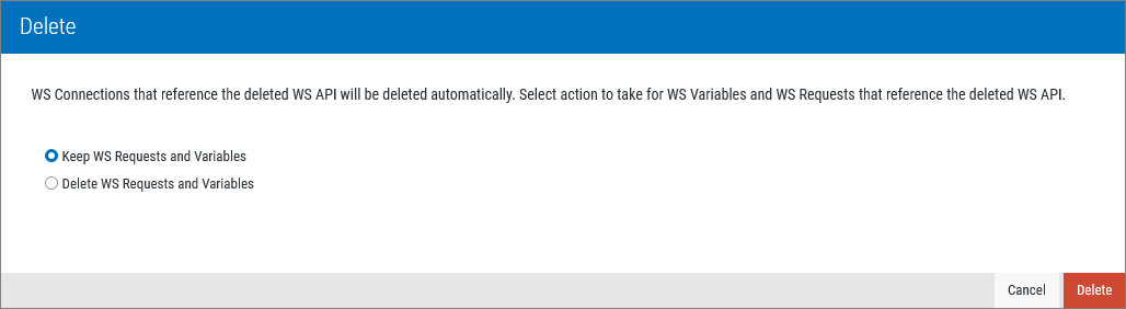 - Select the Request or Variable to open the editor for that item. See Edit Existing WS APIs for details and next steps.