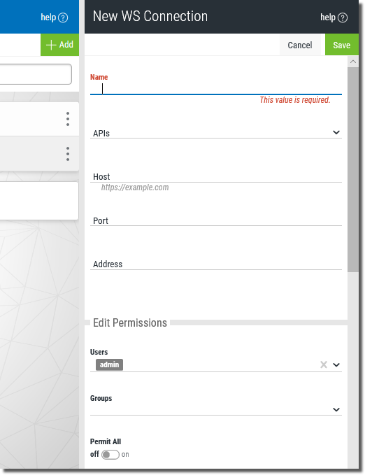 to create the connection. - Finish the process by editing the new WS API (if you created one) as described in the topic Edit Existing WS APIs.